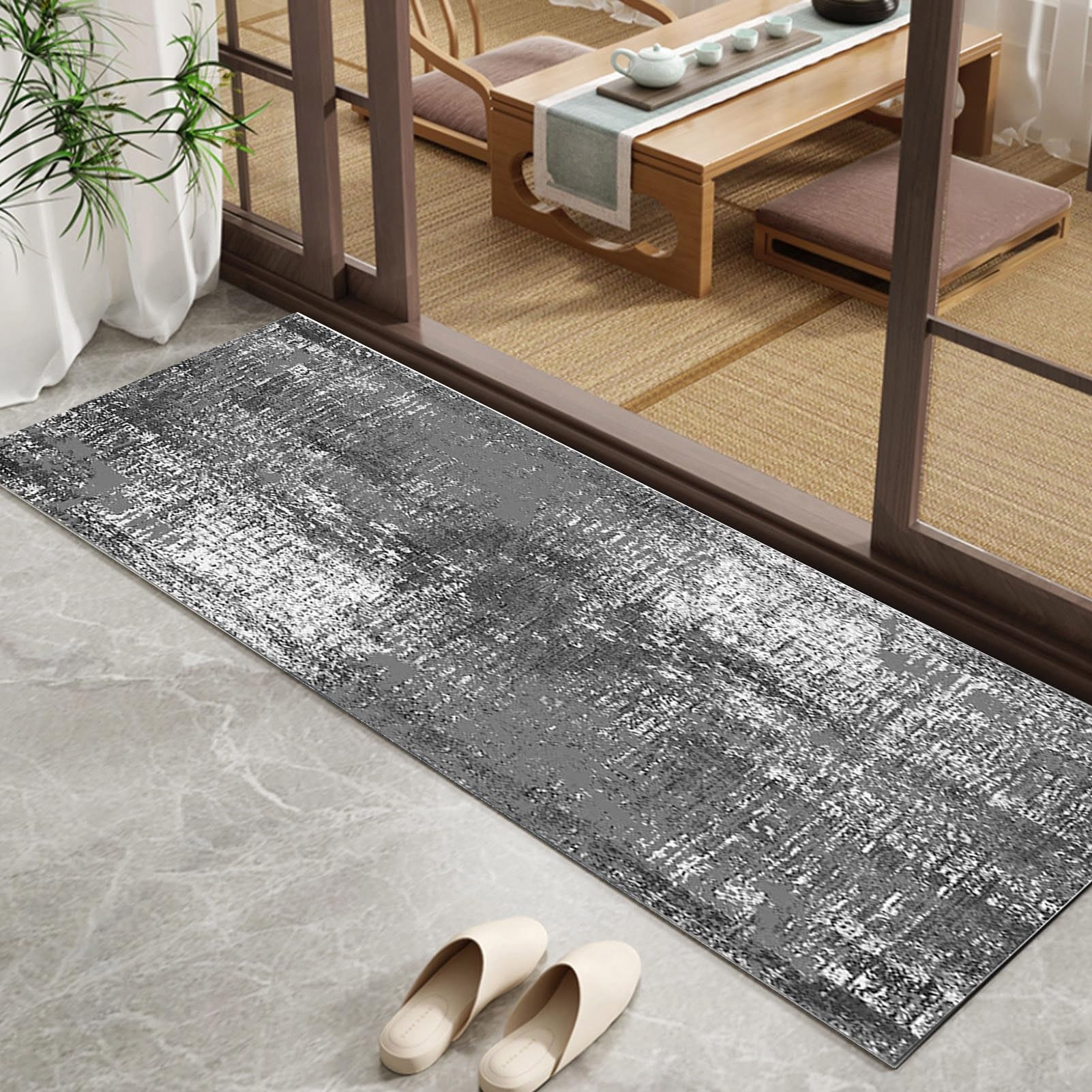 Tappeto Passatoia Da Cucina, Antiscivolo, Lavabile, Tappeto Lungo, Grigio E Nero, 60 X 280 Cm, Design Moderno, Al Metro, Per Corridoio, Sala Da Pranzo, Camera Da Letto, Soggiorno, Cucina