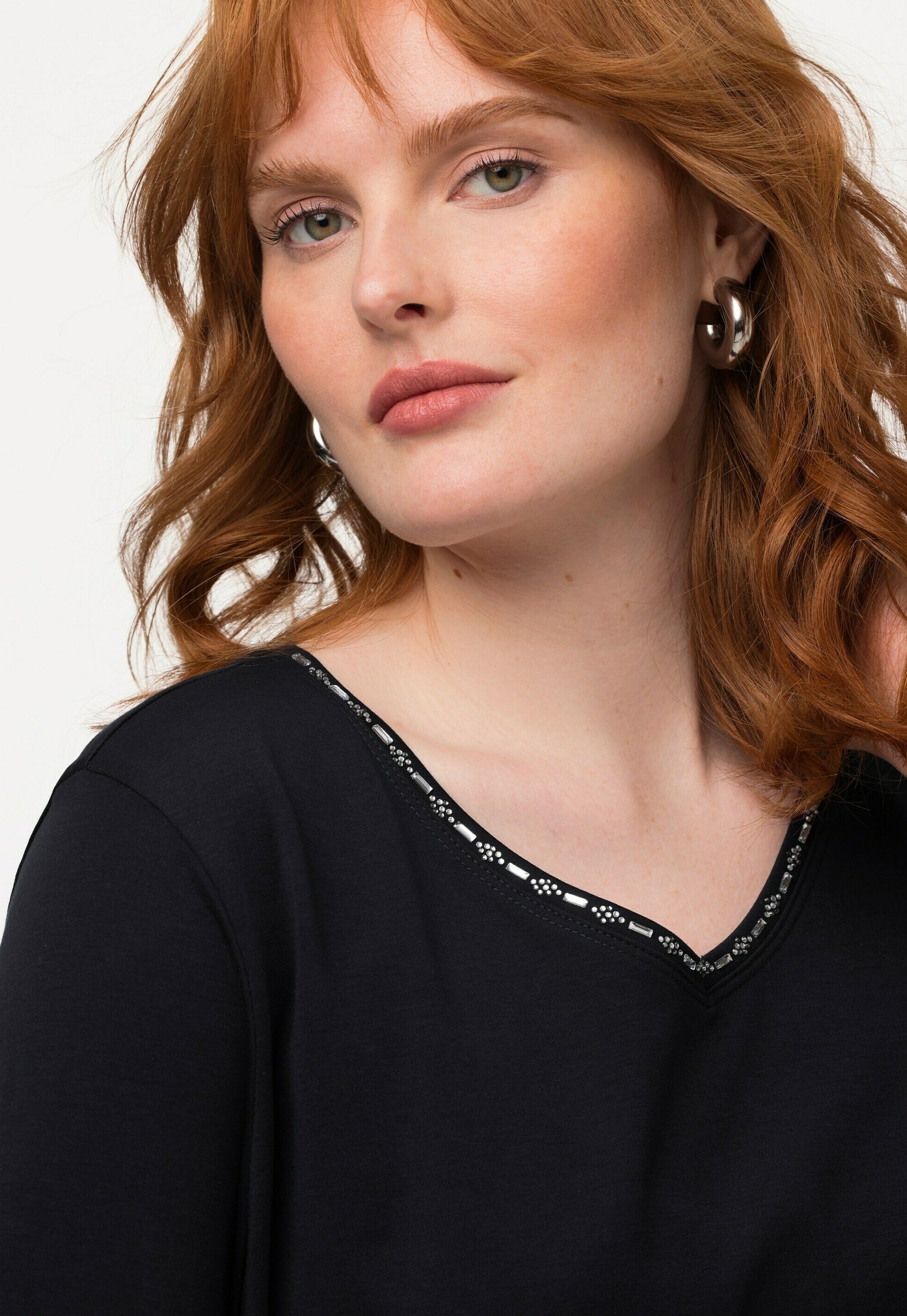 Ulla Popken Felpa Con Orli Arrotolati, Scollo Rotondo E Maniche
