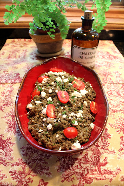 I have been corresponding with the proprietor of the place we will be staying in the Loire Valley of France. He was the one who inspired me to make the Chicken Under a Brick in a previous post. He kindly sent me this recipe for lentil salad that he likes to serve with the chicken.
