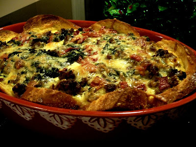 It is very early on Thursday morning and I have just baked Ina Garten’s croissant bread pudding because today is Barefoot Blogger posting time. Peggy of Pantry Revisited chose this first Barefoot Contessa recipe for the month of December and it is a good one. I was especially interested in this bread pudding because I have been experimenting with dishes to serve at a brunch later in the month. The beauty of the dish is that it goes together quickly and is so adaptable. I did not add anything extra to the recipe this time, but it lends itself to many flavor options. Peggy added cinnamon and pecans. You could also add orange or lemon zest to it. It might even be good with almonds and almond extract. I halved the recipe because we were not anxious to eat a casserole that serves 10. I also used the small croissants and dried cranberries instead of raisins. Let me know if you have other suggestions and feel free to join our group of Barefoot Bloggers.