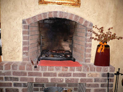 I received my Christmas present early this year. The fireplace in our kitchen is raised to waist high and I have been contemplating the possiblities of hearth cooking. I originally wanted a pizza oven, but it was both cost prohibitive and impossible to add to a second story chimney. But cooking in a standard fireplace is a tradition that dates back centuries. I started looking into the tools needed to do hearth cooking. As it turns out there are many options. One of the old time ways of cooking and the simplest is done in a cast iron spider, which is basically a frying pan with legs. Spiders usually had lids and were used to make such things as cornbread. The spider was placed in the embers and then embers were scooped over the lid and the heat from all around the vessel would bake the cornbread. But one of the easiest methods of cooking in the fireplace is with a grill. I first saw this done on Napa Style with Michael Chiarello. He has a great hearth grill on his website. I would have gotten that one, but it would not get here by Christmas. This wonderful hearth grill that I ordered from Amazon arrived two days before Christmas.