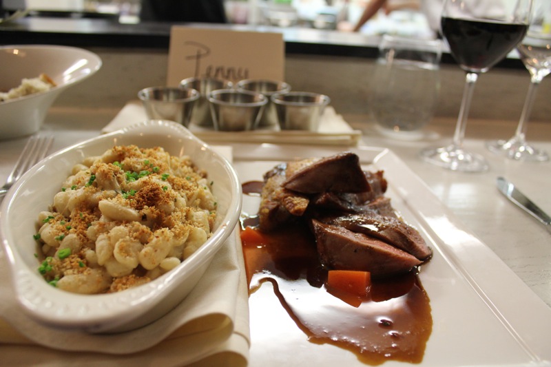 David started with Smoked Cobia Filet with Wild Mushroom and Apple. Cobia is a firm-fleshed flavorful fish that is favored by many well known chefs. Thomas Keller of The French Laundry has Cobia on his tasting menu. The presentation, done on a slate board, was stunning. It was garnished with meyer lemon puree, fresh herbs, shaved pear and ginger sorbet. I can still taste those harmonious flavors.