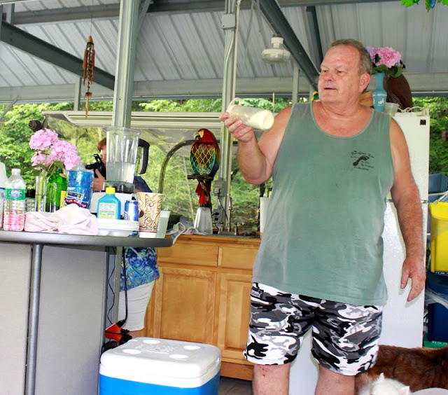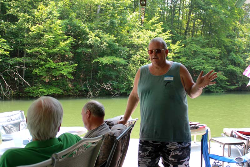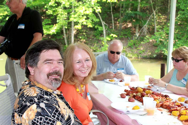 When I heard that Larry ( Big Dude’s Eclectic Ramblings) was having his yearly blogger get together at his lakeside home called Almost Heaven South, I knew that this was the year that we could be there. Here is Larry welcoming everyone. His place has always been a special gathering place for bloggers and friends. This year the major part of the meal was prepared by Katherine of Smoky Mountain Cafe and her husband A.J. These native New Orleans transplants, who now live in Tennessee, are experts in making Crawfish and Shrimp boil.