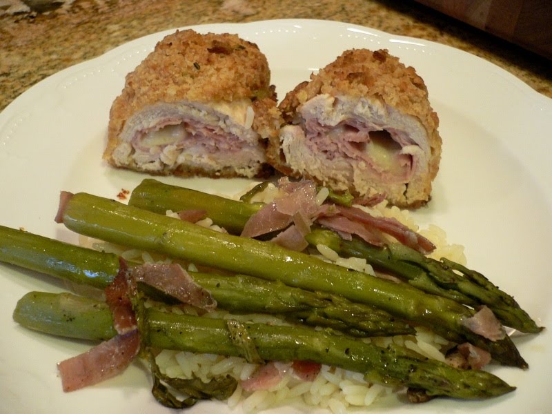 The parchment paper insulates the asparagus and cooks it evenly so that the tips and the bottoms of the stalk are equally tender. This recipe added shiitakes, prosciutto, olive oil and fresh tarragon which infused the spears with wonderful flavor. The slow cooking enhanced the flavor even more. Give it a try. I will be posting about that wonderful chicken cordon bleu next.